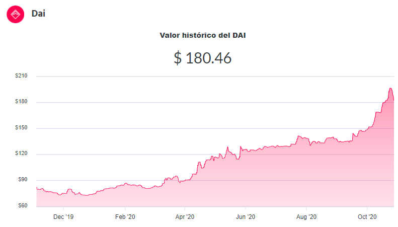 Por su parte, la venta de DAI (otra stable ligada a los "verdes") comenzó la jornada con un precio de compra de $180,46 y un precio de venta de $171,49 en Ripio.com.