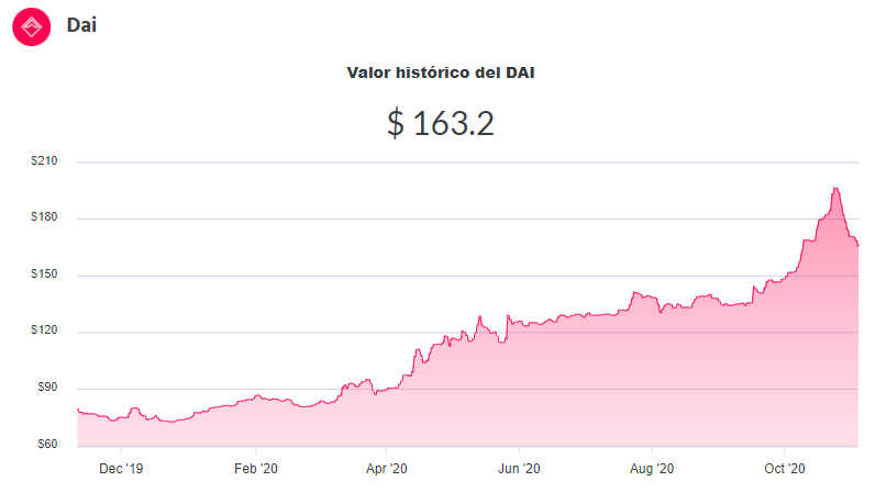 Por su parte, la venta de DAI (otra stable ligada a los "verdes") comenzó la jornada con un precio de compra de $163,20 y un precio de venta de $154,71 en Ripio.com.