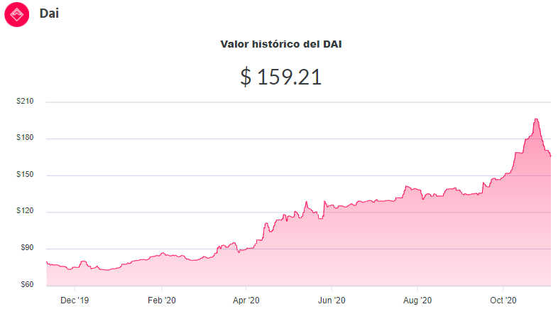 Por su parte, la venta de DAI (otra stable ligada a los "verdes") comenzó la jornada con un precio de compra de $159,21 y un precio de venta de $150,83 en Ripio.com.