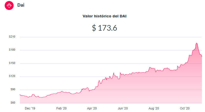 Por su parte, la venta de DAI (otra stable ligada a los "verdes") comenzó la jornada con un precio de compra de $173,60 y un precio de venta de $159,07 en Ripio.com.