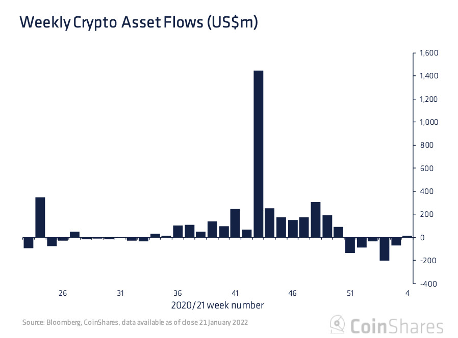Los fondos de criptomonedas finalmente trajeron $ 14.4 millones de dinero de nuevos inversores cuando los precios comenzaron a desmoronarse la semana pasada, lo que significa que ha habido compradores al margen esperando un buen nivel para ingresar al mercado.