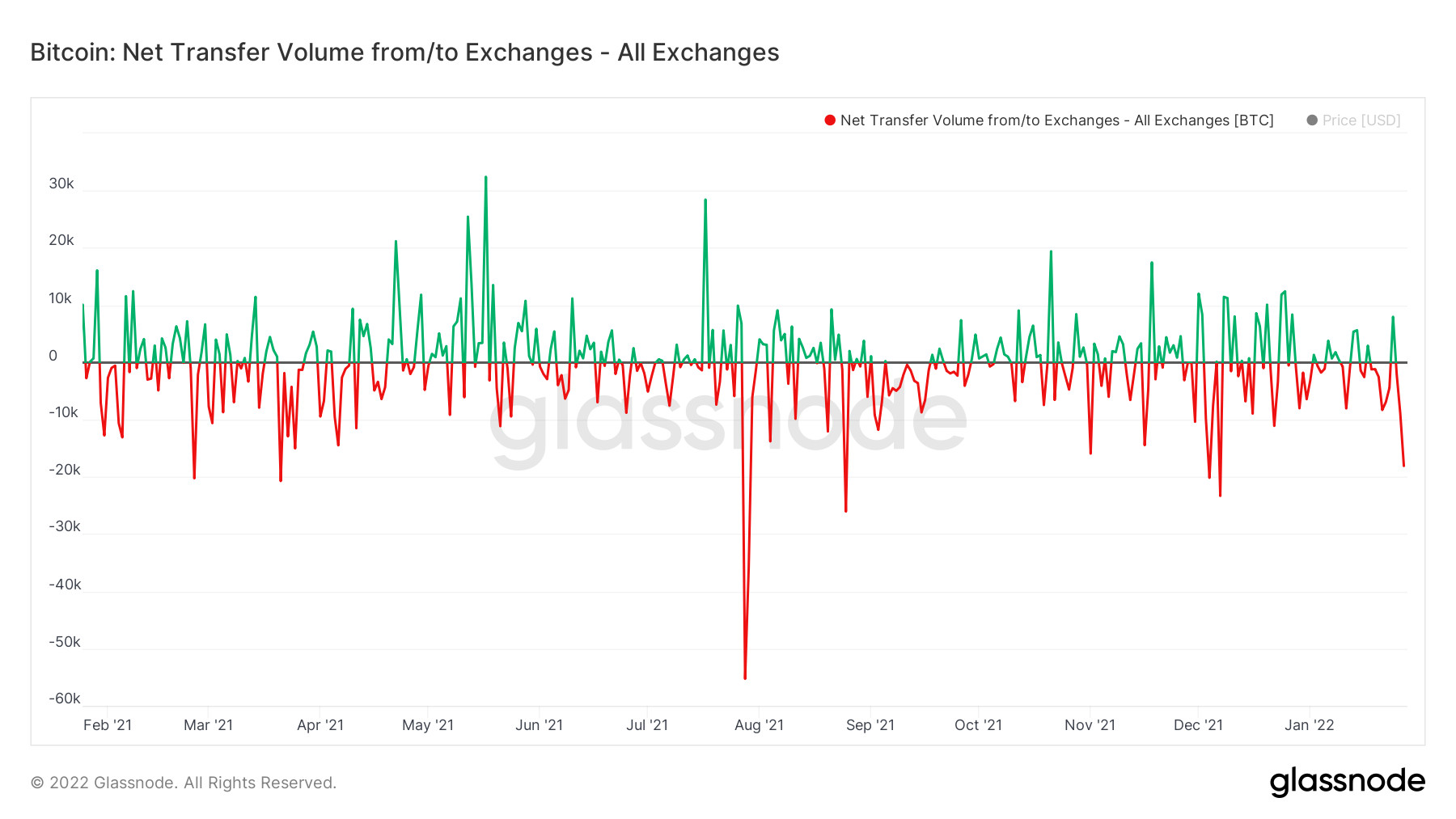A pesar de la actitud agresiva de la FED, los inversores de BTC no parecían perturbados ya que se compró y retiró una gran cantidad de BTC de los intercambios para su custodia un día después de la reunión de la FED. Esto podría explicar la resistencia de BTC, cuando su precio se mantuvo firme a pesar de que las acciones y los metales preciosos se derrumbaron después del anuncio de la FED.