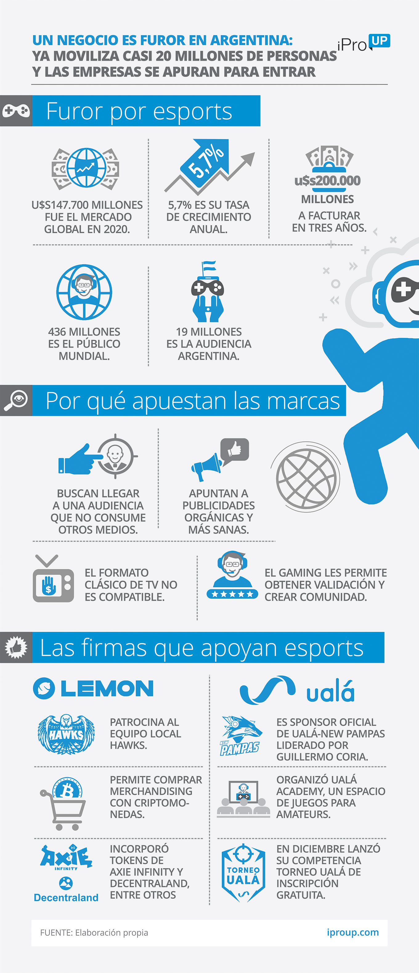 El ecosistema esports se expandió rápidamente, las competencias y torneos se multiplicaron, y los equipos se profesionalizaron al ritmo que las marcas patrocinadoras empezaron a interesarse cada vez más en esta industria, que a nivel global está valuado en u$s 1.100 millones, con proyección de crecimiento de un 25% interanual para los próximos cinco años.