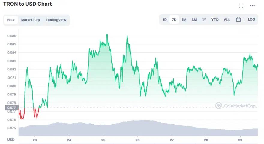 Tron se mantiene entre las principales monedas del mercado. Su capitalización total, de más de u$s7.700 millones, la coloca en el número 13 del mercado, en el que movió casi u$s870 millones en volumen de comercio en las últimas 24 horas, según un artículo del sitio Criptonoticias.