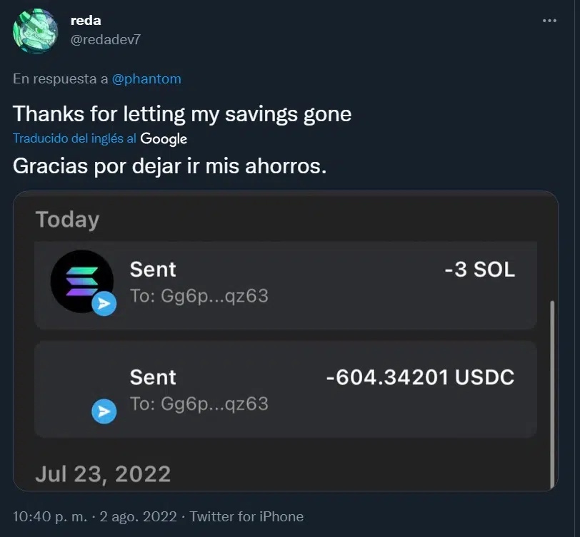 "Se han vaciado más de 5000 monederos de Solana en las últimas horas", informó la firma de auditoría blockchain OtterSec. "Estas transacciones están siendo firmadas por los propietarios reales, lo que sugiere algún tipo de compromiso de clave privada", agregó la firma.