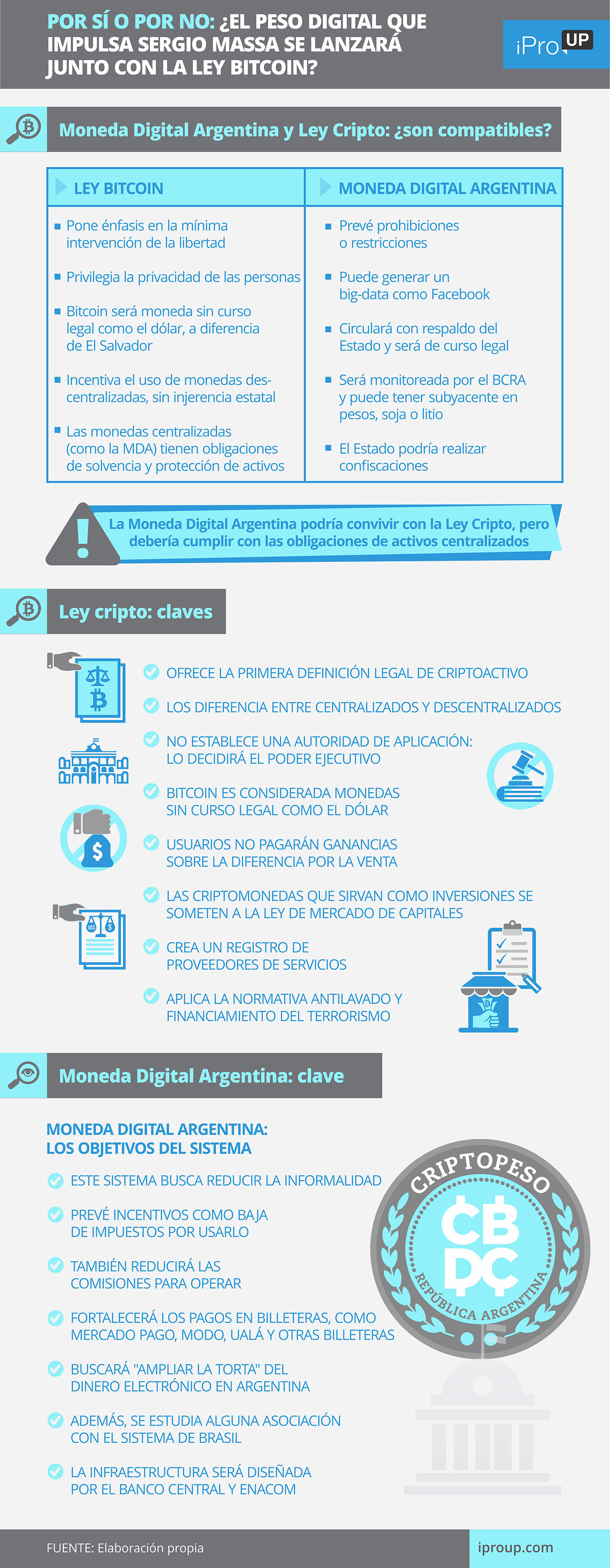 Natalia Salinas, Crypto Advisor, resalta a iProUP que la divisa virtual líder "permite autonomía financiera y que los individuos controlen su dinero, mientras que la moneda digital del Banco Central permite niveles de estabilidad y regulación, pero a expensas de esa autonomía".