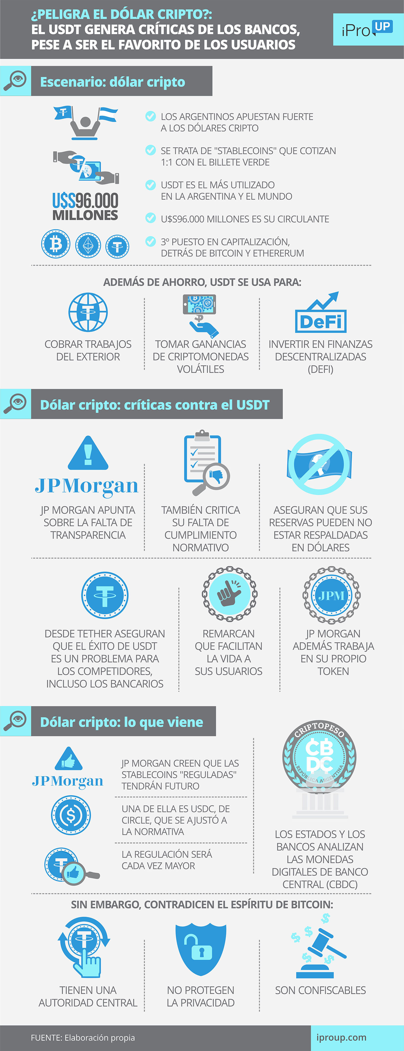 "Es probable que las stablecoins se regulen más en el futuro. Las que se adapten mejor a estas regulaciones estarán en una mejor posición para tener éxito", afirma a iProUP Rodrigo Mansilla, analista de los mercados financieros.