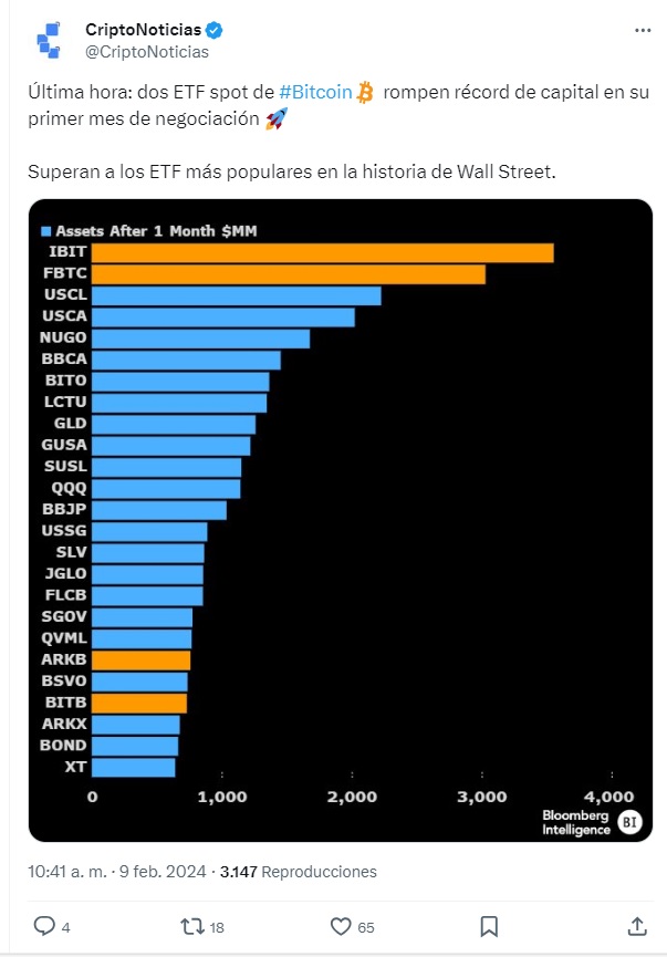 Hace casi un mes, los ETF de bitcoin (BTC) al contado fueron aprobados en los Estados Unidos. Desde entonces tuvieron un avance constante, llegando dos de ellos a marcar un récord en capital bajo gestión en el primer mes de negociación.