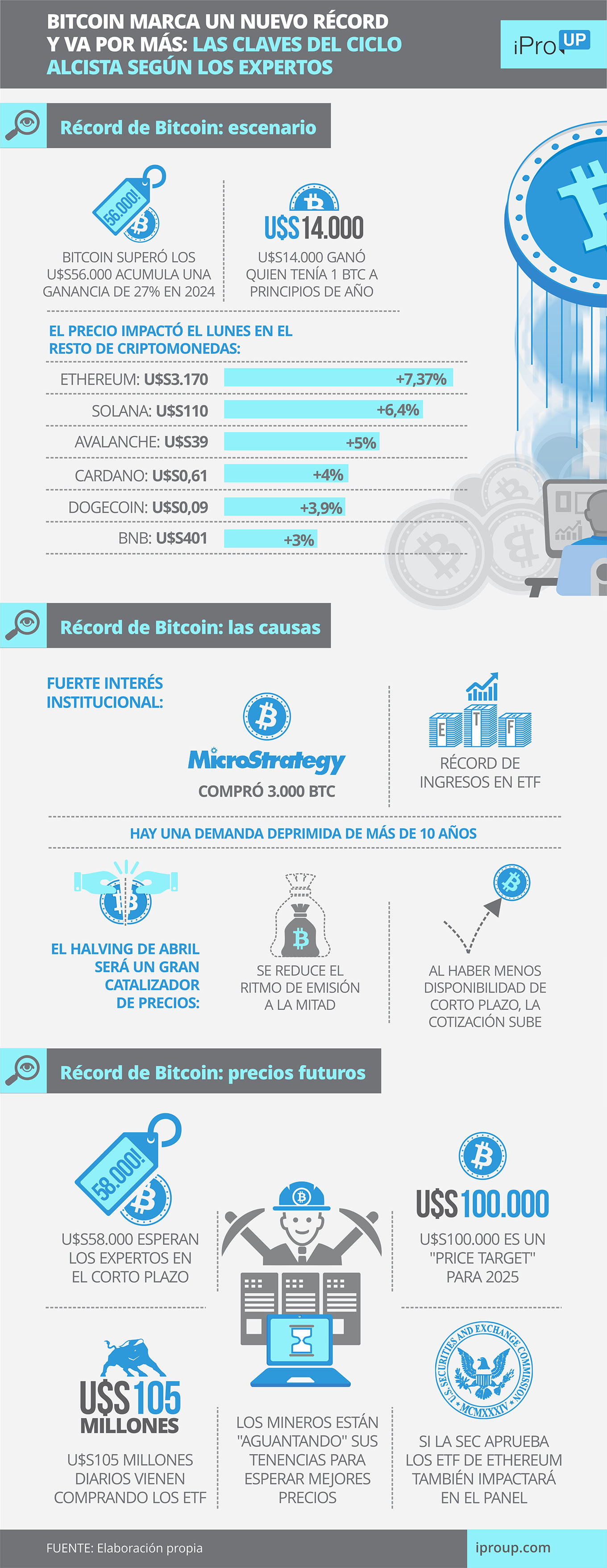 Pedro Rey, fundador de cripto La Plata y CriptoEducador desde 2017, señala a iProUP "es importante recordar que el máximo histórico de Bitcoin ubica en u$s68.789,63, lo que indica un amplio margen de crecimiento potencial".