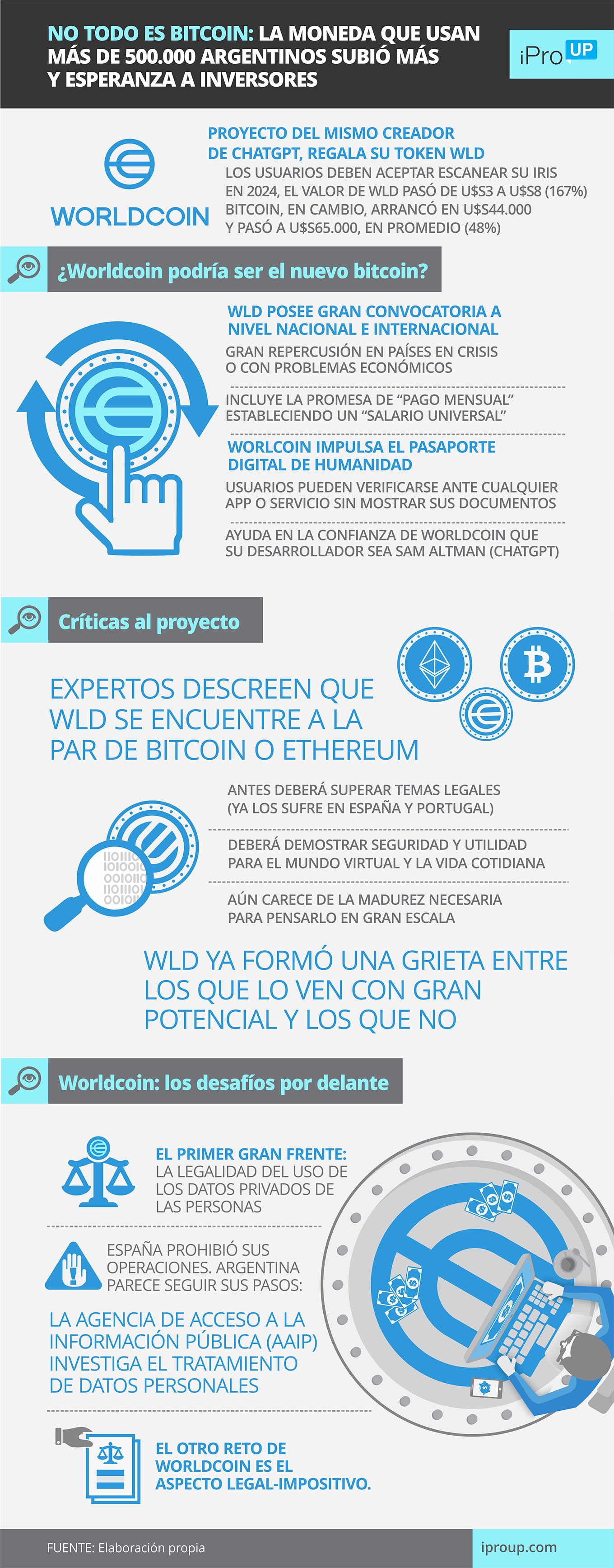 Según el experto, "hoy es muy difícil creer que Worldcoin pueda estar en la misma oración que Bitcoin o Ethereum, ya que antes deberá superar temas legales que ya está sufriendo en países como España"