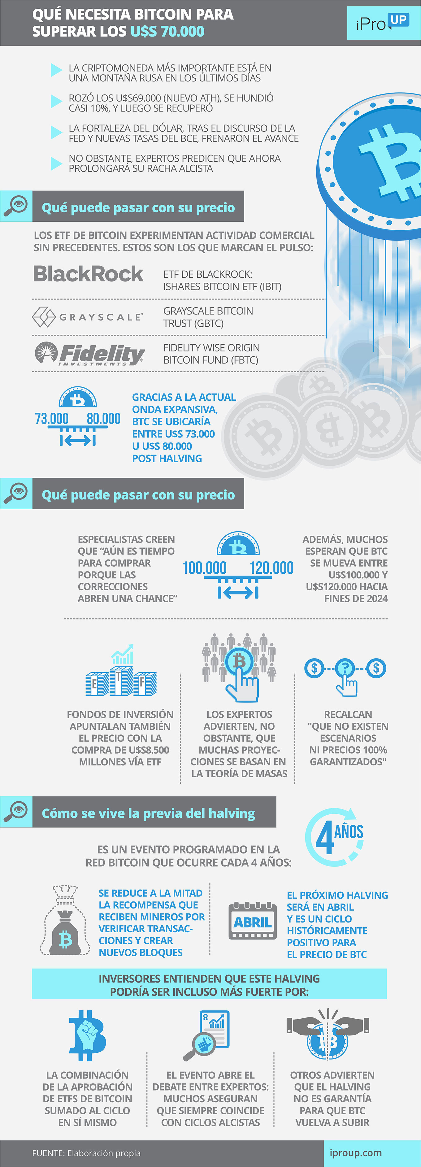 "Muchos hablan que este ciclo será distinto, más fuerte, por una combinación del furor por los ETF y el halving. Esto puede llevarlo bastante más arriba de lo estimado. Para mí, alcanzará los u$s120.000 para fines de año", confiesa a iProUP Giudice.