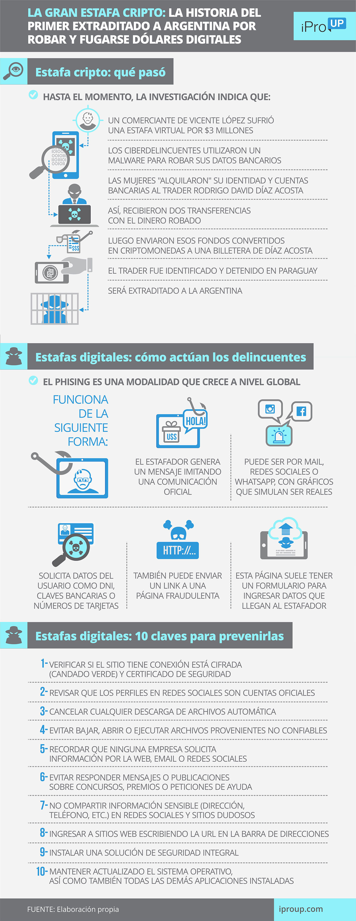 Enrique Dutrá especialista en seguridad informática, asegura a iProUP: "Es un tipo de estafa para engañar a las personas y que compartan información confidencial, como contraseñas, datos bancarios o números de tarjeta de crédito".
