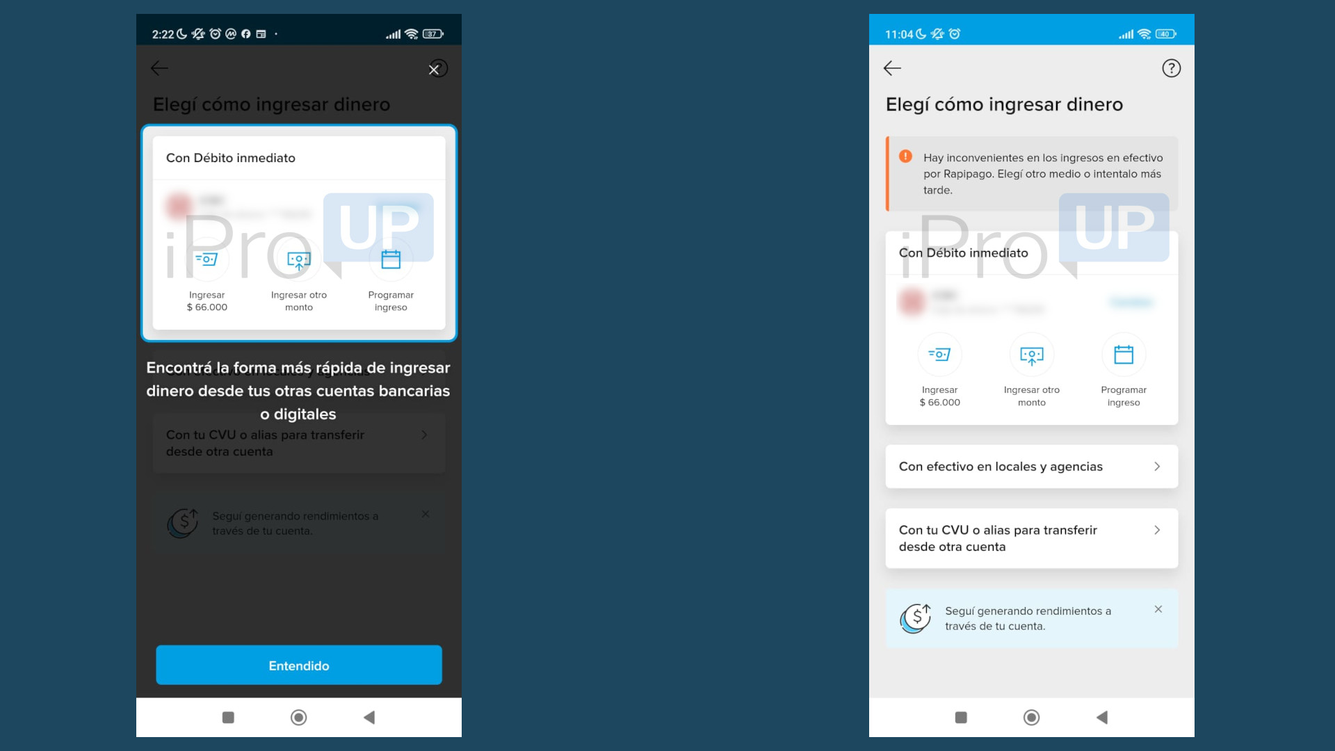 Al ingresar en la aplicación, los usuarios también encontrarán que Debin se encuentra activo para quienes deseen ingresar dinero a Mercado Pago.