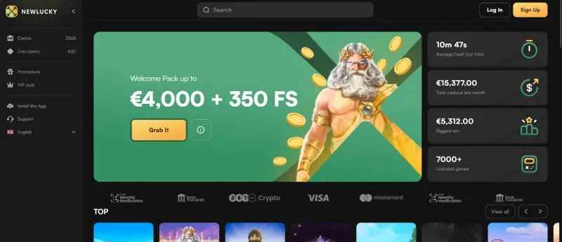 Newlucky - Top mobiel casino zonder CRUKS: €4000 en 350 Free Spins