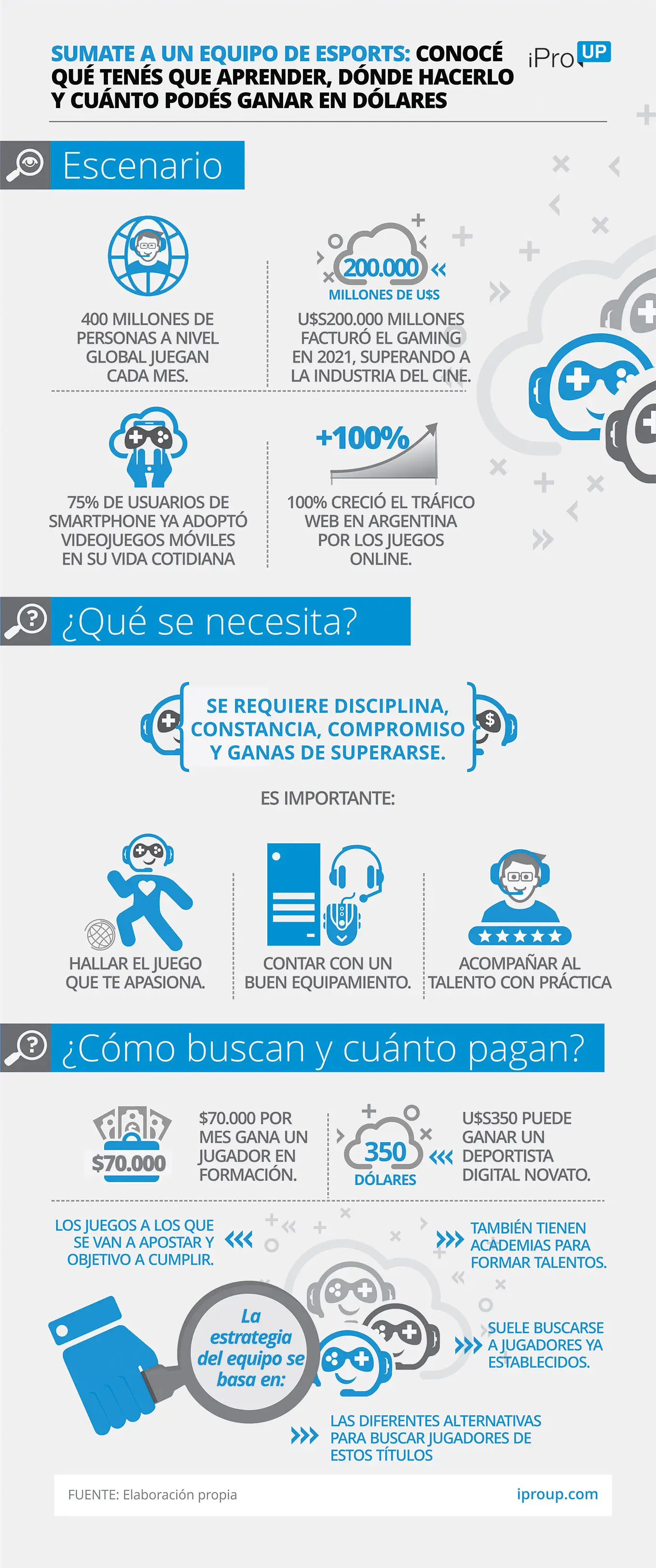 En lo que respecta a las remuneraciones, señala que "depende de la región, el juego, la experiencia, el nivel, etcétera. Son muchos factores los que determinan el salario de los jugadores".