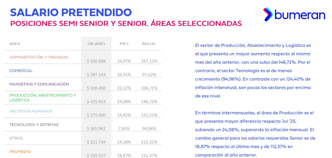 - Senior y semi senior es de $339.507 por mes, con una suba del 18,87%,