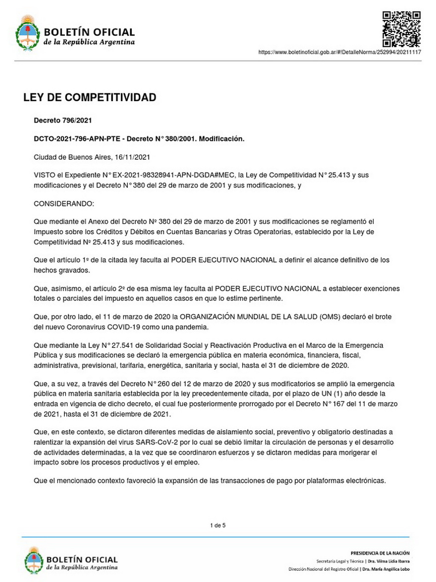 El decreto del Poder Ejecutivo señala que "resulta prudente limitar las exenciones vigentes en el caso de intervenir determinados instrumentos, tales como monedas digitales o similares".