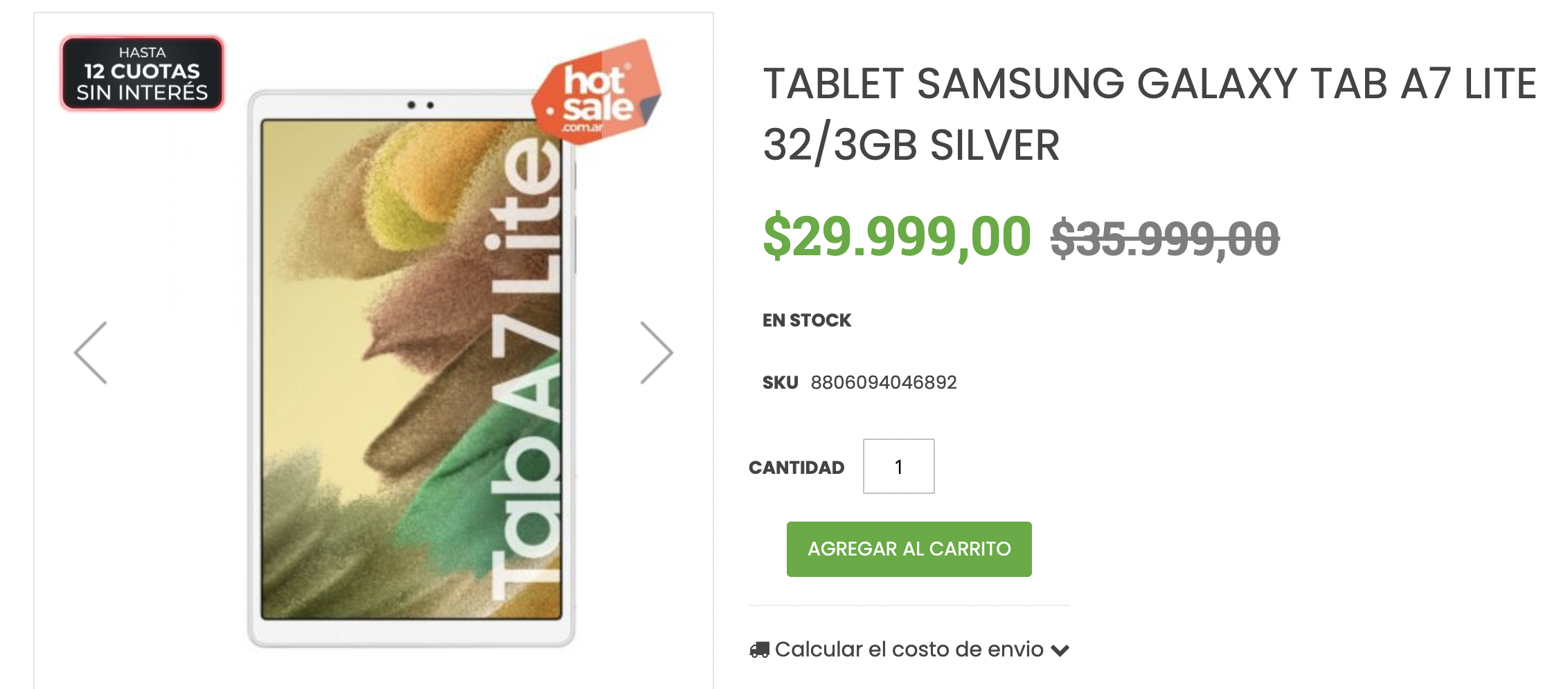 - TABLET SAMSUNG GALAXY TAB A7 LITE 32/3GB SILVER. Precio espacial: $29.999,00, antes $35.999,00