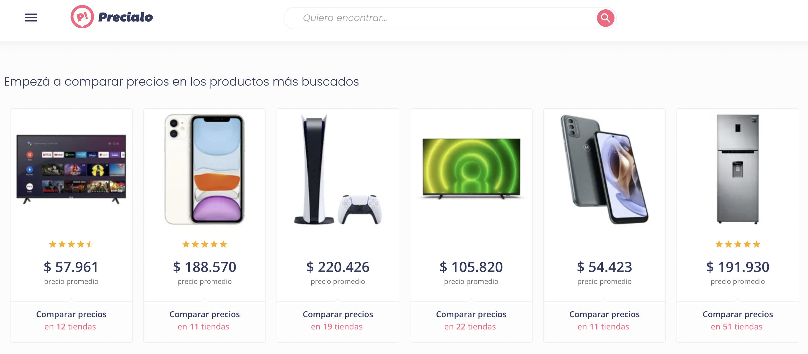 Precialo es una plataforma compartiva de precios que aborda desde celulares, electrodomésticos o cualquier otro producto. La plataforma ayuda a realizar una búsqueda inteligente que permite encontrar rápidamente el precio más barato para cada producto, ya sean heladeras, lavarropas, cámaras y accesorios o Smart Tv.