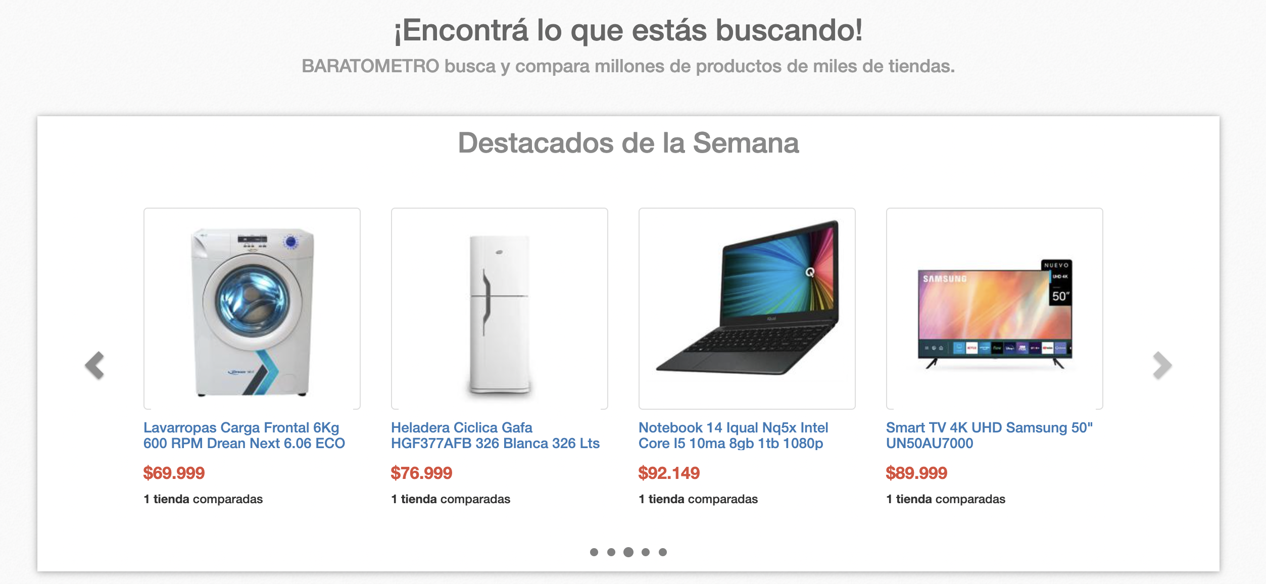 Por otro lado, también se encuentra Barometro. Se trata de un motor de búsqueda de artículos que compara las principales Tiendas Web para abarcar la mayor parte del mercado de venta de e-commerce de Argentina.