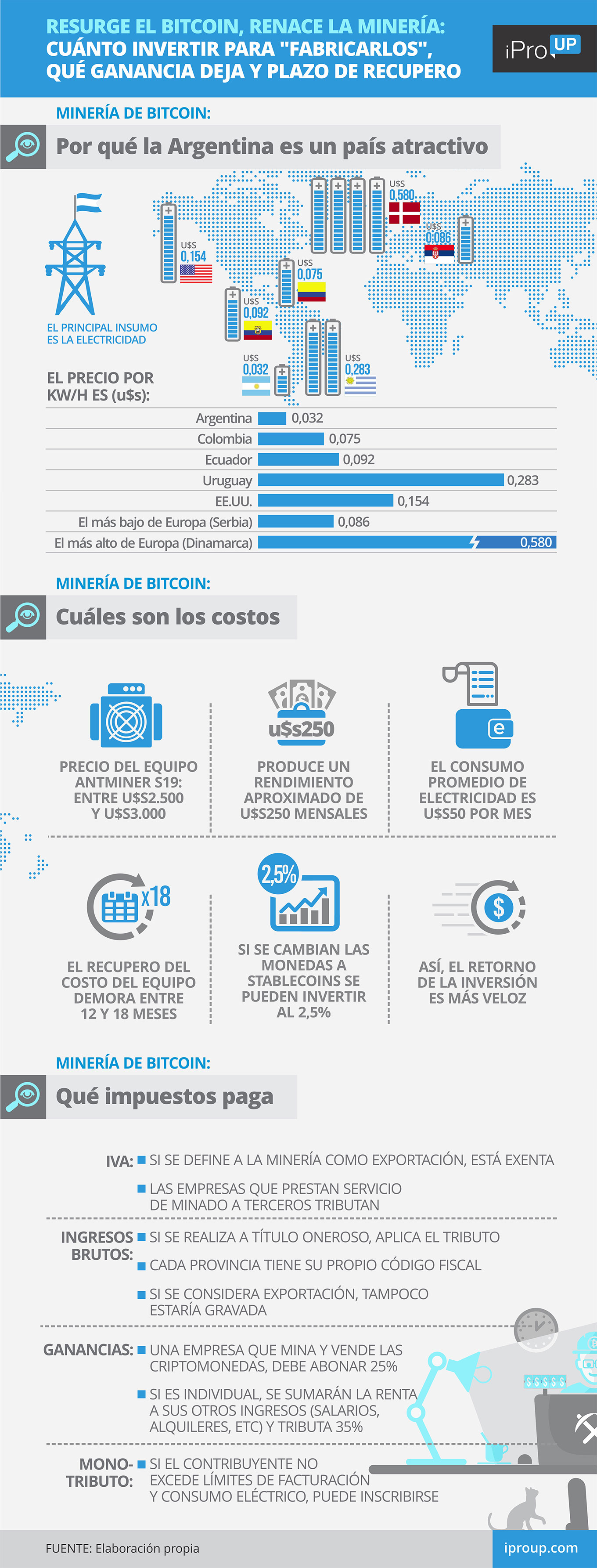 Zocaro resalta que para calcular la ganancia neta en el minado, las divisas digitales creadas cotizan al valor de mercado en moneda nacional en la fecha de adquisición. Además, la empresa puede deducir los gastos necesarios para obtener y mantener esas ganancias gravadas, como los costos de electricidad, amortizaciones de equipos y sueldos del personal.