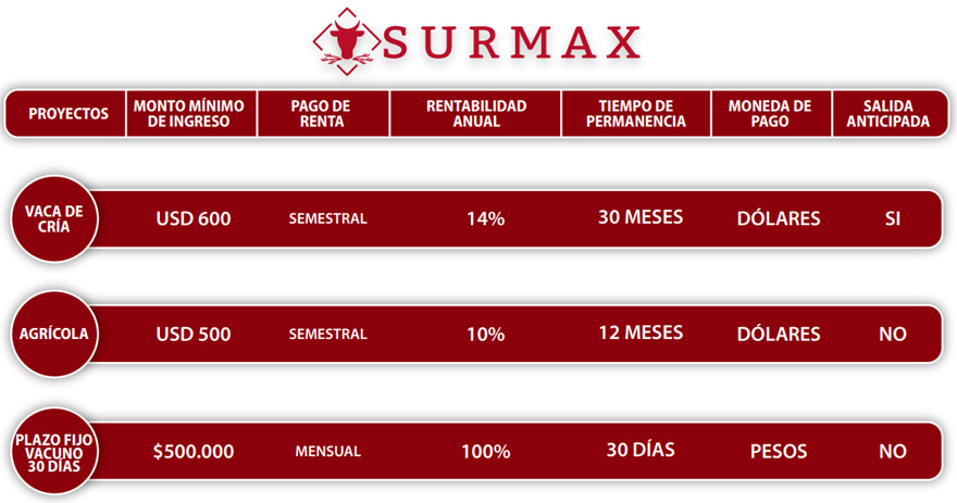 Con más de 2.000 usuarios activos en su plataforma de inversiones digitales, Agropecuaria Surmax permite a cualquier persona ingresar en alguno de sus proyectos de inversión con apenas u$s500 y obtener retornos en dólares que varían entre un 10% y un 14%. Nacieron en 2018 con la idea de integrarse verticalmente en toda la cadena de valor alimenticia, desde la cría y recría, pasando por el engorde, el faenamiento y procesamiento del alimento, la venta directa a mercado interno, exportaciones y hasta con un complejo gastronómico propio con estilo vanguardista en la ciudad de Mar del Plata.