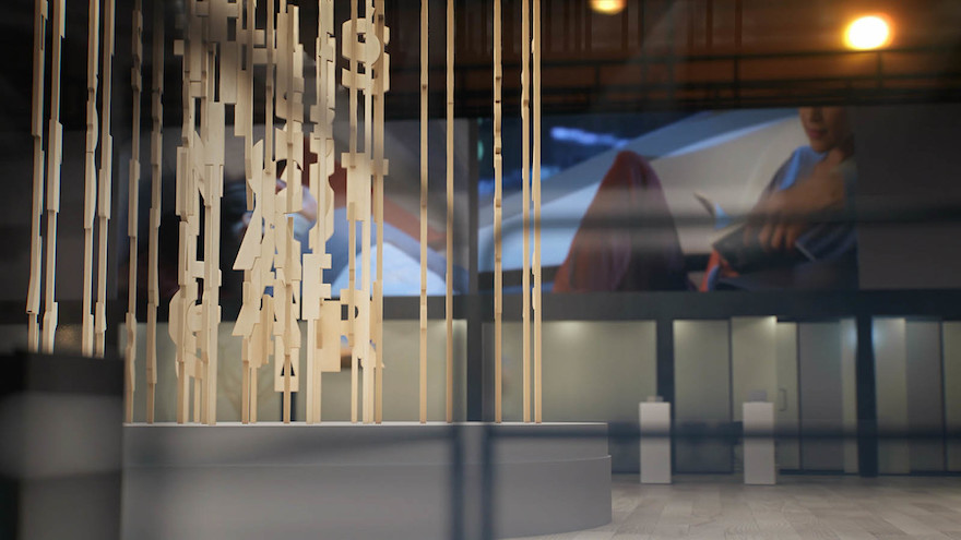 La pieza central del stand de Volvo es entonces una escultura de madera en la que se puede leer “this not a car” (esto no es un coche).