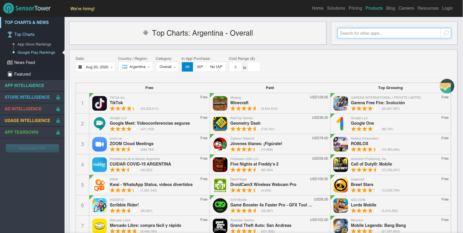 Este jueves 20 de agosto, la app más descargada en la Argentina según Sensor Tower es TikTok, la red social china que es furor entre los más jóvenes al proveer videos cortos, frecuentemente con fotos, y con la consigna de ser divertidos.