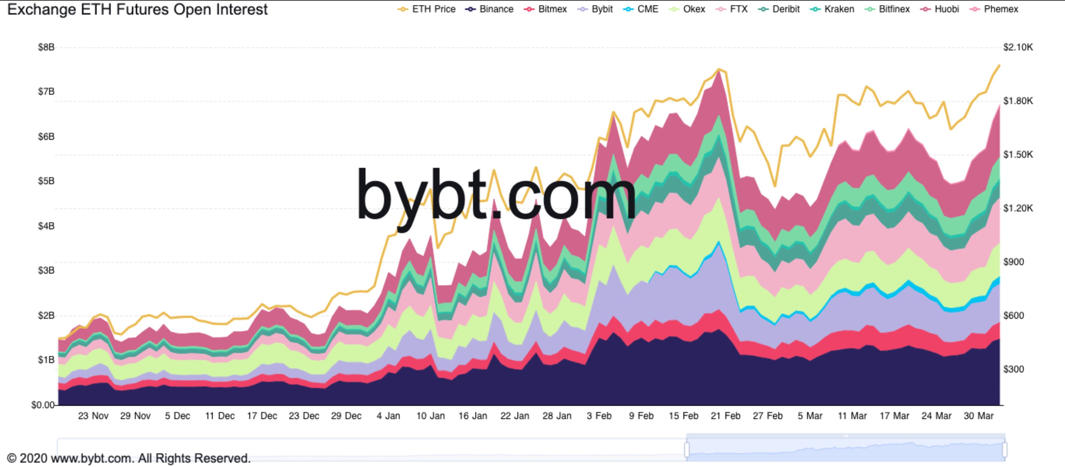 A medida que el precio de ETH sube, el interés en los futuros y opciones de ETH también se ha disparado, y el interés abierto en ambos derivados aumentó.