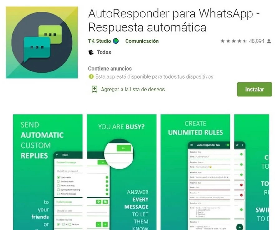 Es otras aplicación que también funciona para Android. Con ella podrás personalizar la respuesta que quieras dar para cada situación, incluso en horarios y días específicos.