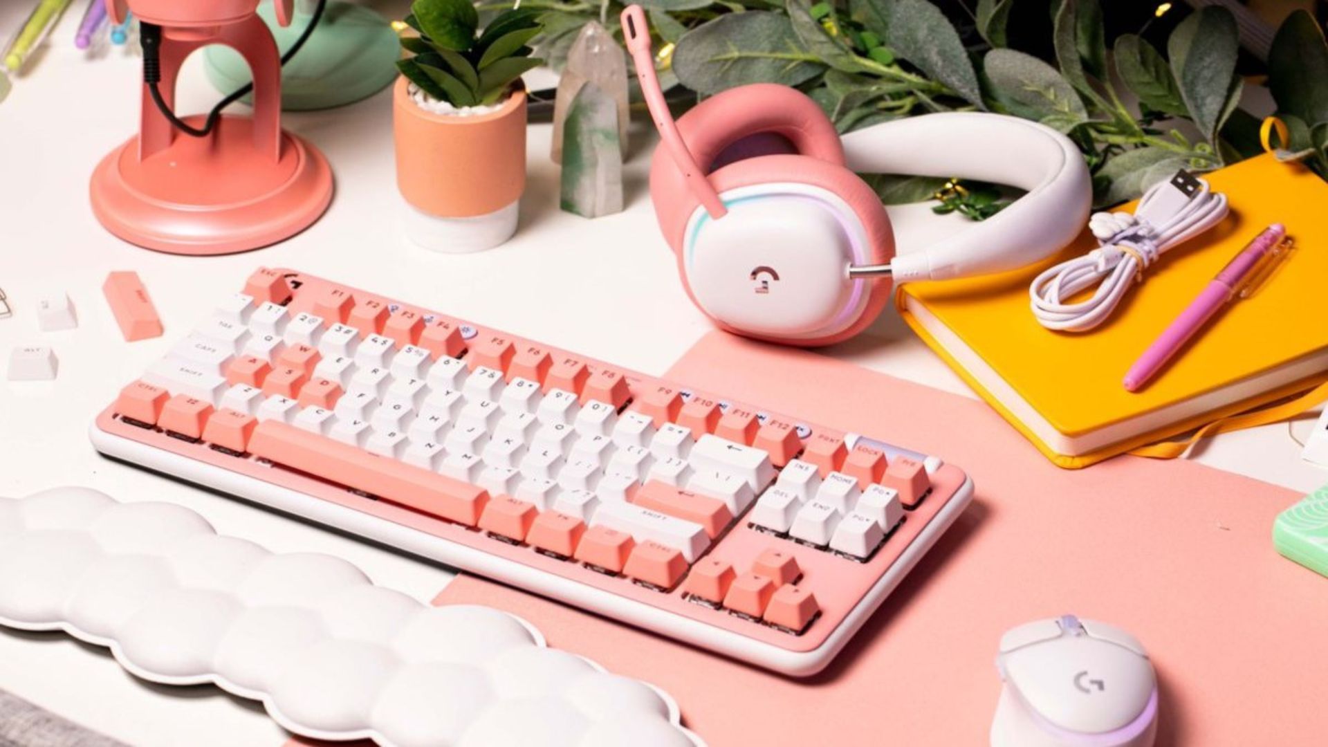 - Accesorios - Llevá la colección un paso más allá con ocho nuevos accesorios que incluyen fantásticos detalles como el reposamanos en forma de nube, el amuleto del cable y la funda de transporte en forma de corazón. Otros accesorios son las almohadillas para los oídos y los micrófonos boom, las placas superiores de los teclados G713 y G715, el extractor de teclas y cepillo, y el mouse pad para que los jugadores puedan personalizar su setup y estilo de juego.