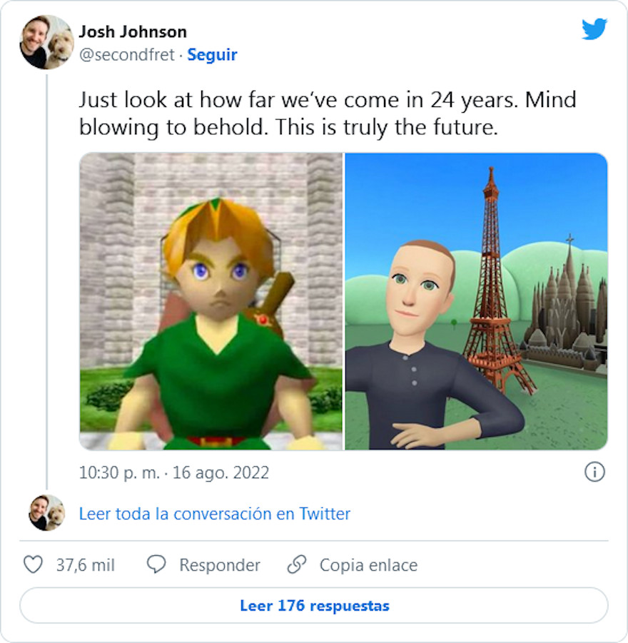 "Sólo hay que ver lo lejos que hemos llegado en 24 años. Es una sorpresa para la vista. Esto es realmente el futuro", escribió irónicamente uno. Otros anotaron que el avatar es un símbolo del fracaso de la compañía en crear un metaverso futurístico, pese a haber invertido en el proyecto 10.000 millones de dólares el año pasado. "Esta selfie le costó a Mark Zuckerberg 10.000.000.000 de dólares. Seguid en la escuela, niños", ironizó otro.