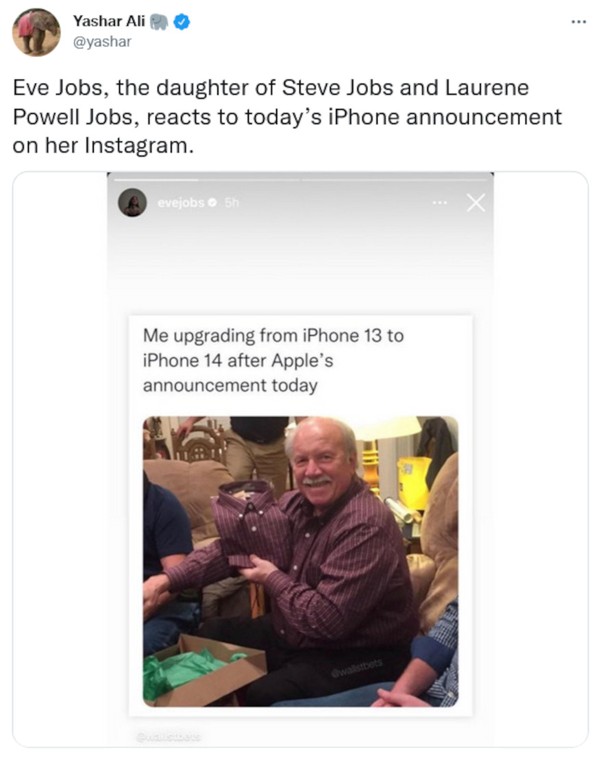 A través de un meme, Eve Jobs, una de las hojas de Steve, resaltó las grandes similitudes entre las dos últimas generaciones de los iPhone.