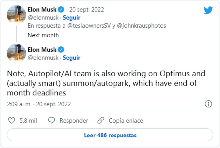 "El Día de la Inteligencia Artificial de Tesla se aplazó hasta el 30 de septiembre, ya que es posible que para entonces tengamos un prototipo de Optimus funcionando", escribió en Twitter.
