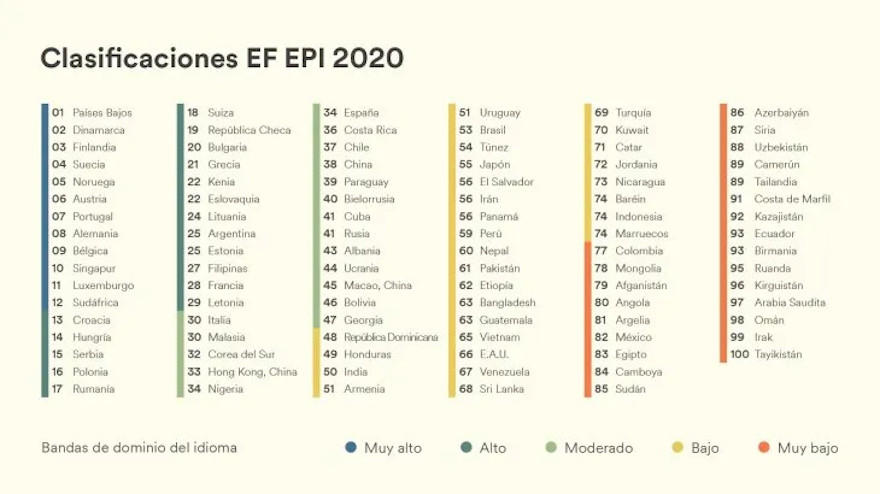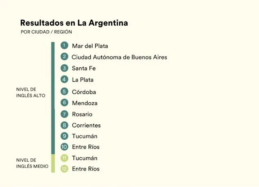 Argentina fue el único país de la región en figurar con "alta aptitud" en el manejo del inglés, poniéndose en el mism mnivel que España, Francia y Ucrania.