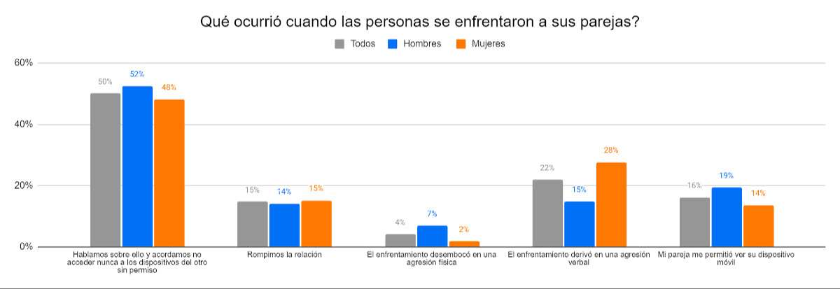De aquellos que enfrentaron a su pareja luego de haber descubierto que habían accedido a su dispositivo móvil, la mayoría conversó sobre el incidente y aceptó no dejar que suceda nuevamente, sin permiso.