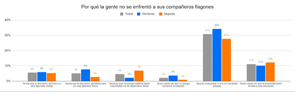De aquellos que eligieron no enfrentar a sus parejas, el 31% quería ver si era un incidente de una sola vez, y un 11% tenía miedo de que se produjera una discusión.