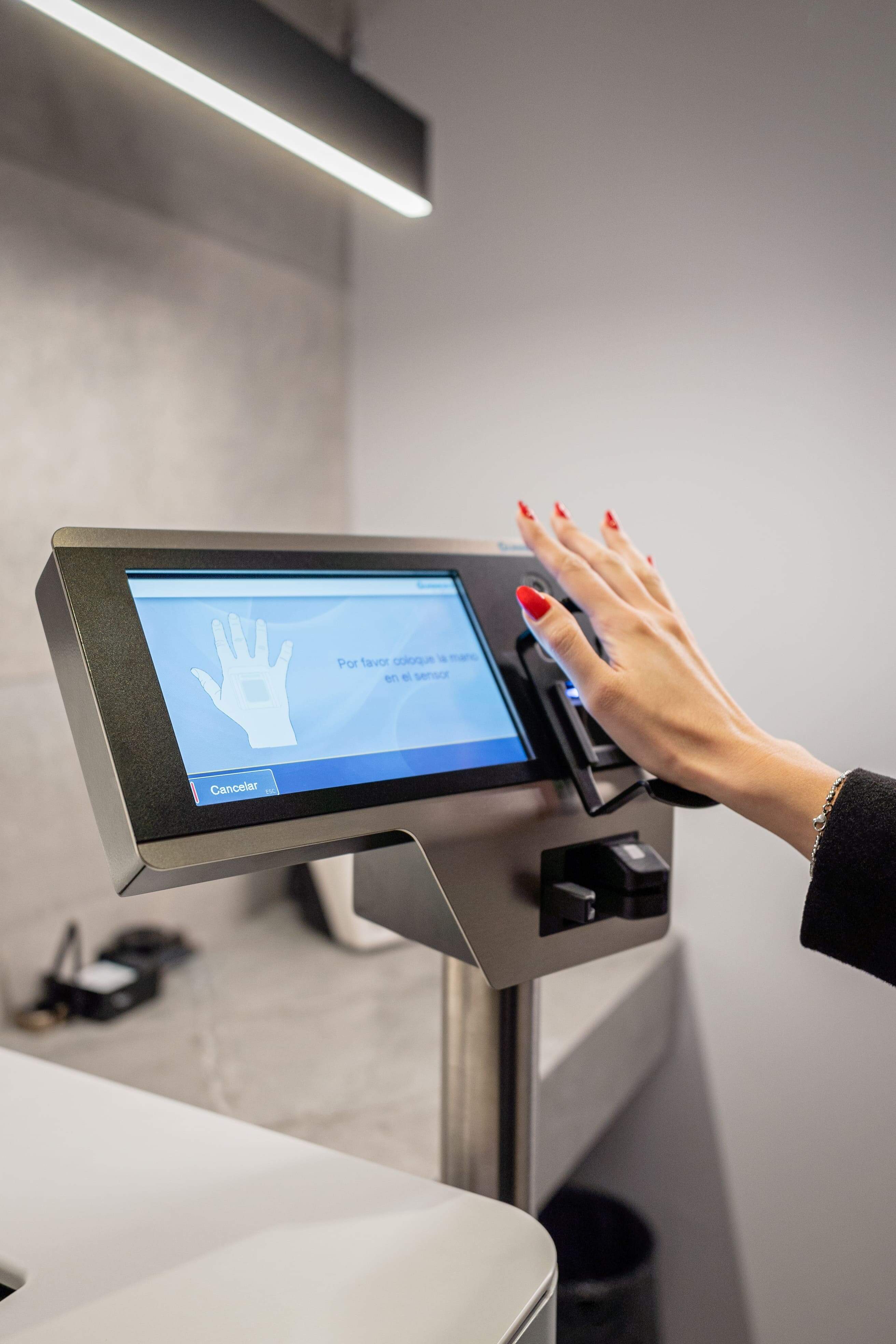 - Una vez dentro de la bóveda, el cliente debe identificarse a través de un lector de tarjetas mediante una contraseña y escaneo biométrico.