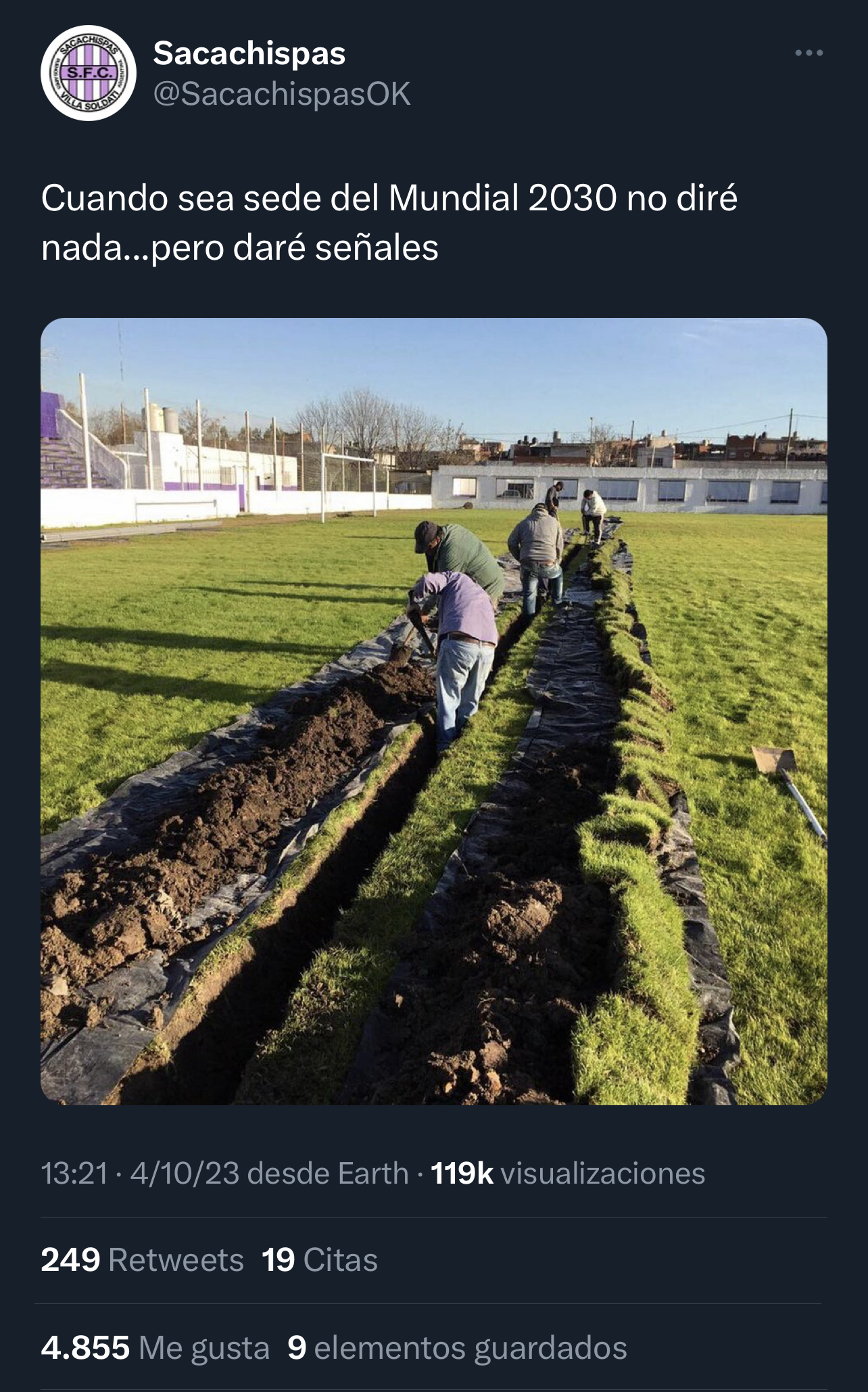 @SacachispasOK no se quedó atrás y compartió: "Cuando sea sede del Mundial 2030 no diré nada...pero habrá señales".