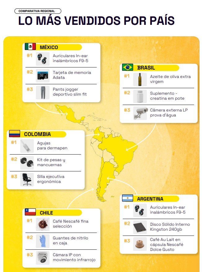 MELI Trends muestra los intereses amplios y diversos del consumo online de los argentinos, como parte de un contexto regional y global del e-commerce en crecimiento constante: según eMarketer-Insider Intelligence, la penetración del e-commerce en Latinoamérica representó el 12,5% del total del retail en 2023, y se espera que para 2027 genere transacciones por 38.000 millones de dólares.