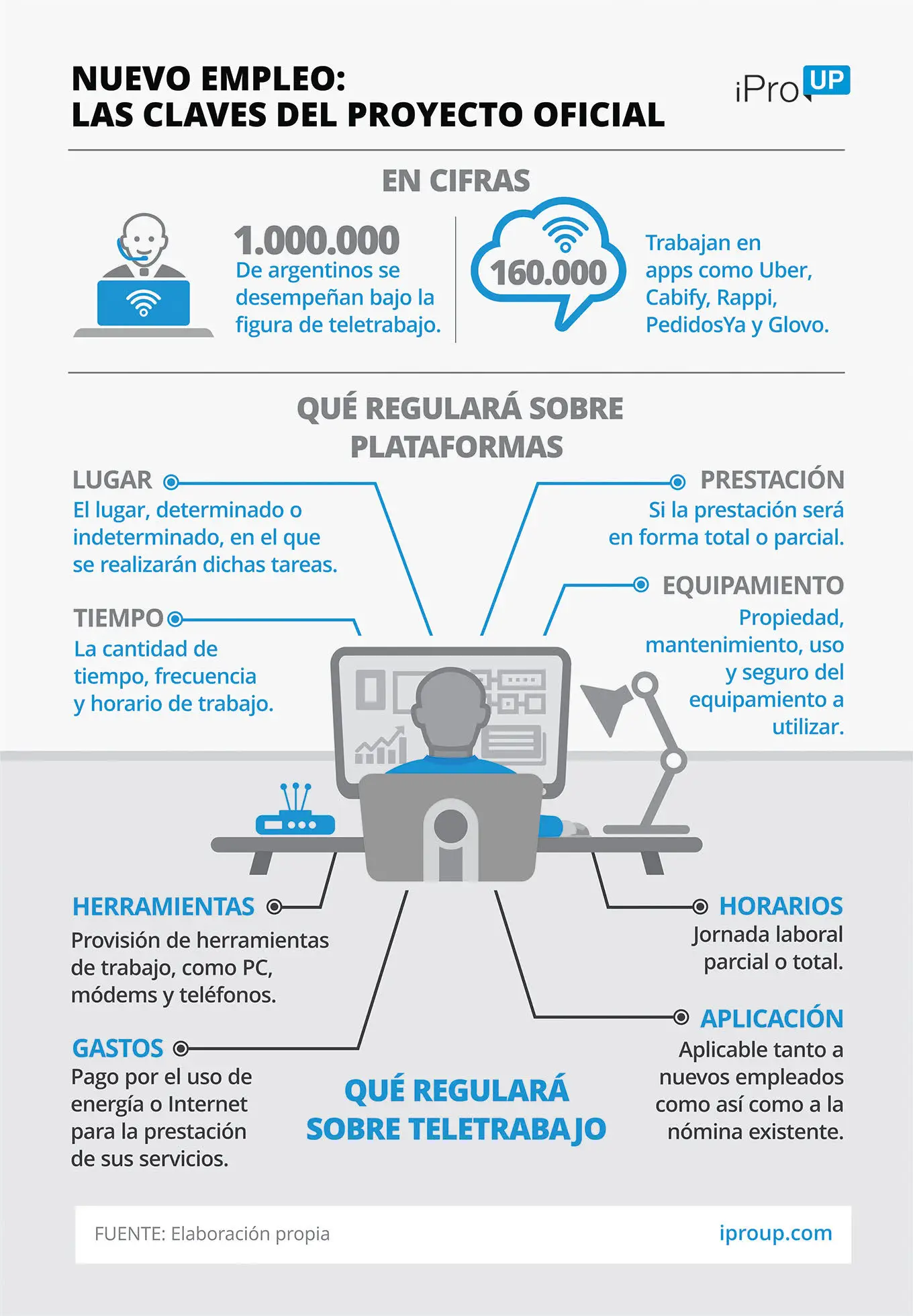 La iniciativa de la cartera encabezada por Dante Sica a la que accedió iProUP en exclusiva establece que "el teletrabajo (trabajo conectado o trabajo remoto) podrá ser realizado de manera parcial o total y resulta aplicable a nuevos empleados que se incorporen a la empresa así como también a los trabajadores que ya se desempeñan en ella".