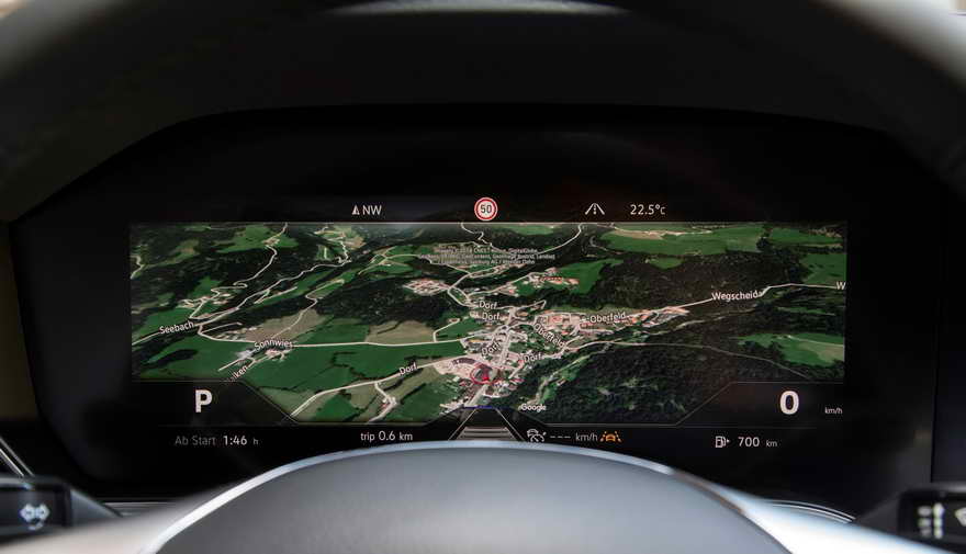 Otra situación en la que interviene el tablero 3D es al momento de estacionar, cuando se crea una imagen más realista de la cámara de marcha atrás. La empresa asegura que los obstáculos se pueden detectar antes y calcular mejor cuánto espacio queda, por ejemplo, entre el paragolpes y la pared.