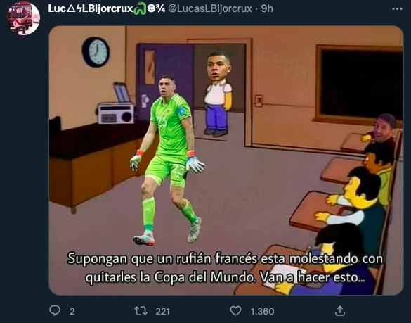 El usuario @LucasLBijorcrux usó el baile del Dibu Martínez para reflejarlo en un meme.