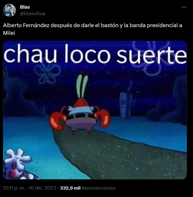 Asumió el referente libertario, Javier Milei, como presidente de la Nación y las redes sociales explotaron. A continuación, los mejores memes