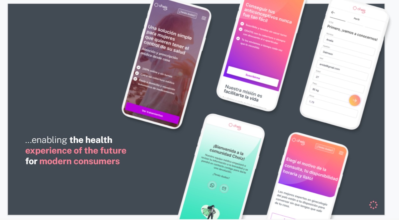 Choiz es una plataforma que brinda un servicio de tratamientos médicos recurrentes en la mujer. Se encargan de la atención, prescripción, delivery de medicamentos y reabastecimientos automáticos. De esa manera no solo mejoran el acceso al sistema de salud, sino también la correcta adherencia a los tratamientos para así mejorar los resultados.